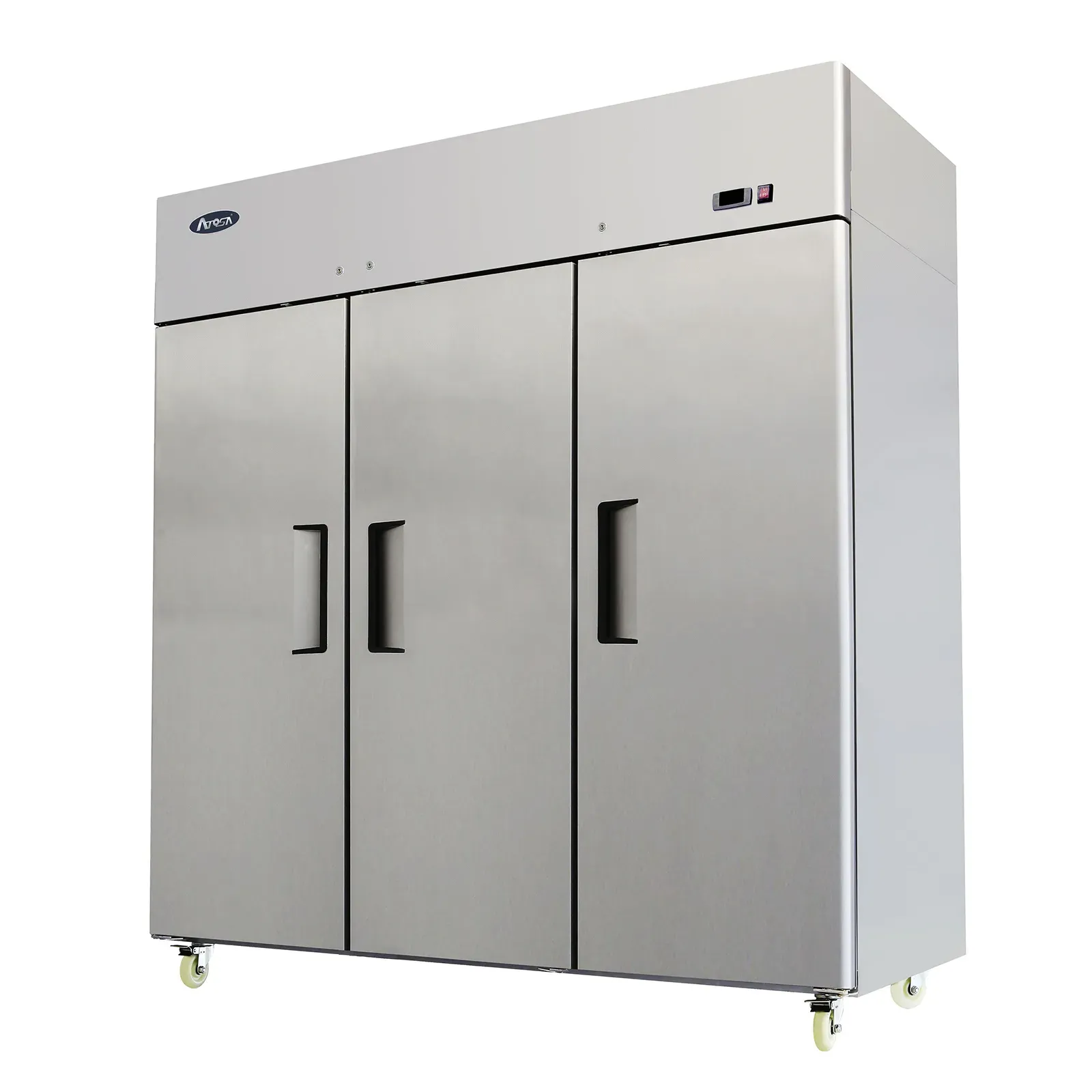 Fuel your passion for cooking with the Atosa USA MBF8003GR Freezer, Reach-In. This top-of-the-line freezer is designed to meet the demands of a busy commercial restaurant. With its spacious three-section design, measuring 77-4/5"W x 33-3/10"D x 83"H, and a generous capacity of 64.9 cu ft., you'll have plenty of room to store all your ingredients and prepared dishes. The three locking hinged solid doors ensure that your food stays secure and fresh. The digital temperature control allows you to easily adjust the temperature between -8° to 0°F, ensuring optimal food preservation. With nine adjustable shelves and interior LED lighting, organizing and finding your items is a breeze. The stainless steel interior and exterior not only provide durability but also make cleaning a breeze. The Atosa USA MBF8003GR Freezer, Reach-In is the perfect addition to any commercial kitchen, providing reliability, efficiency, and convenience.