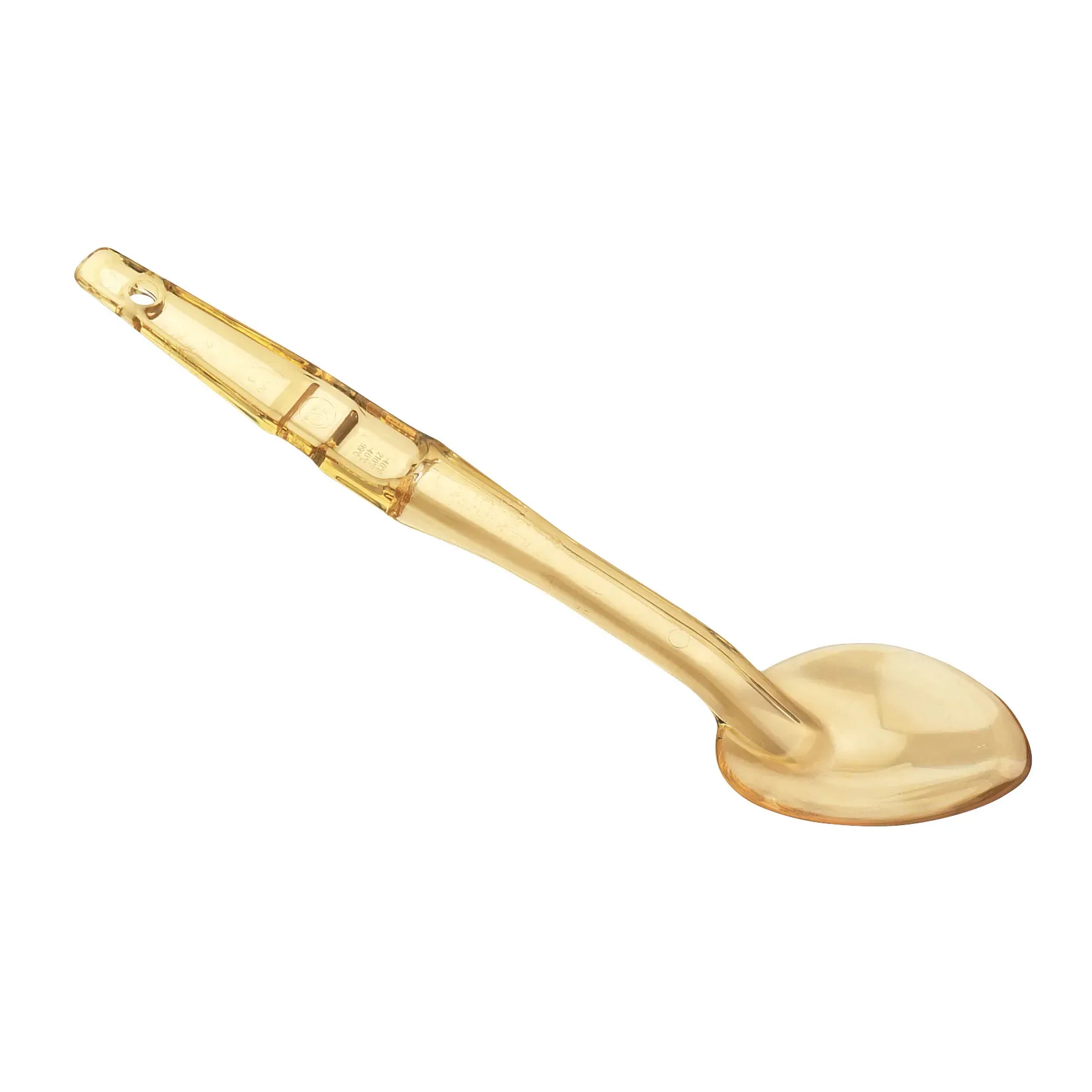 Seamless solutions for food optimization. Introducing the Cambro, SPO13150, Serving Spoons. These high heat spoons are a must-have for any commercial restaurant. With a length of 13 inches, they provide the perfect reach for stirring and serving large quantities of food. The amber color adds a touch of elegance to your presentation, while the durable construction ensures long-lasting performance. Designed by Cambro, a trusted name in the industry, these serving spoons are packed with features that make them ideal for busy restaurant environments. They are heat resistant, allowing you to confidently use them with hot dishes. The spoons are also easy to clean and dishwasher safe, saving you time and effort. Upgrade your restaurant's serving utensils with the Cambro, SPO13150, Serving Spoons and experience the difference in efficiency and quality.