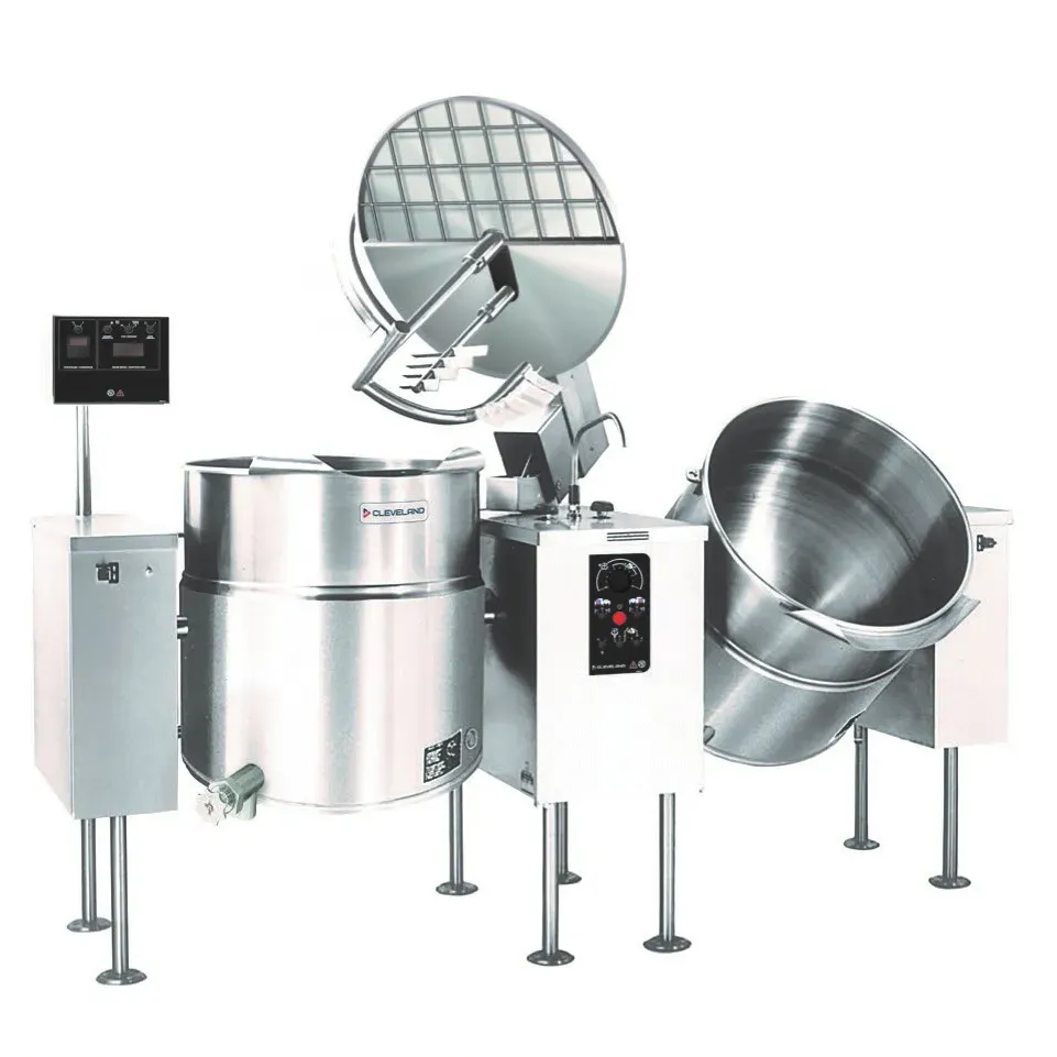 Premium tools for culinary excellence, the Cleveland TMKEL40T Kettle Mixer is a game-changer for commercial restaurants. This twin unit electric kettle/mixer boasts a twin 40-gallon capacity, allowing for large-scale food preparation with ease. The 2/3 steam jacket design ensures even heat distribution, resulting in perfectly cooked dishes every time. With a tilt-type feature and variable speed control, this kettle mixer offers unmatched versatility and precision. The two-piece cover with a screen allows for easy monitoring and prevents splatters, while the H/C faucet and 2" tangent draw-off simplify the process of transferring liquids. Made with durable stainless steel construction and an open leg base, this Cleveland Kettle Mixer is built to withstand the demands of a busy kitchen. Elevate your culinary creations with the TMKEL40T and experience the pinnacle of efficiency and performance.