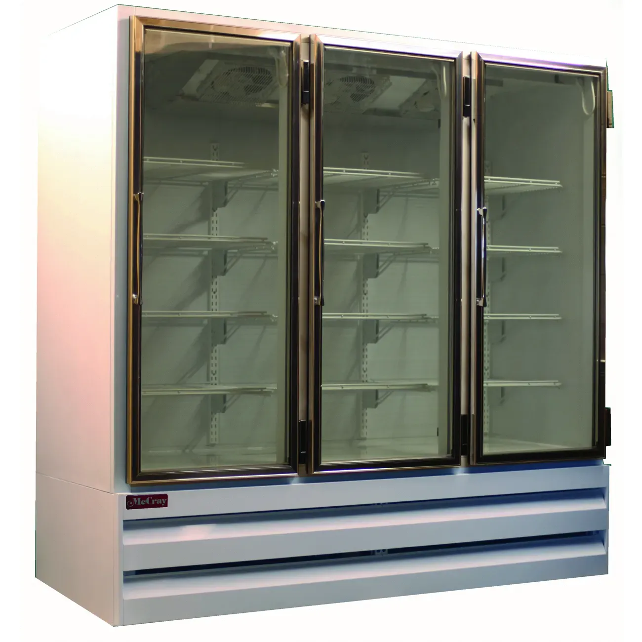 Kitchen innovation at its best, the Howard-McCray GR65BM-S Refrigerator Merchandiser is a must-have for any commercial restaurant. With its three-section design and a spacious 65 cu. ft. capacity, this refrigerator merchandiser provides ample storage space for all your perishable items. The stainless steel exterior and interior not only give it a sleek and professional look but also make it durable and easy to clean. The hinged glass doors allow for easy visibility and access to your products, while the four epoxy coated shelves per door provide organized storage. Equipped with electronic controls and automatic defrost, this refrigerator merchandiser ensures optimal temperature and minimal maintenance. The LED lighting enhances product visibility, attracting customers and boosting sales. Powered by a 1/2 HP bottom mount compressor, this unit is energy-efficient and reliable. UL EPH Classified and UL-Sanitation certified, you can trust the quality and safety of this Howard-McCray Refrigerator Merchandiser. Upgrade your restaurant's refrigeration system with this top-of-the-line product.