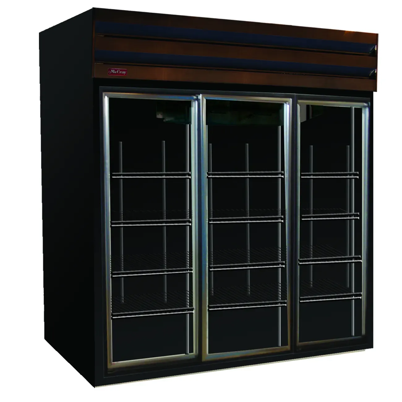 Cook with confidence with the Howard-McCray GSR102-B Refrigerator Merchandiser. This four-section refrigeration unit is designed to meet the needs of commercial restaurants, offering a spacious 102 cu. ft. capacity to store and display a wide range of food and beverages. The black exterior and interior give it a sleek and professional look that will enhance the aesthetics of any restaurant setting. The sliding glass doors provide easy access to the contents while keeping them visible to customers. With four epoxy-coated shelves per door, you can organize and display your products effectively. The top mount self-contained refrigeration system ensures efficient cooling, while the electronic control and LED lighting add convenience and visibility. Equipped with 5" casters, this refrigerator merchandiser is easy to move and clean. Trust in the reliability and quality of Howard-McCray to keep your ingredients fresh and your customers satisfied.
