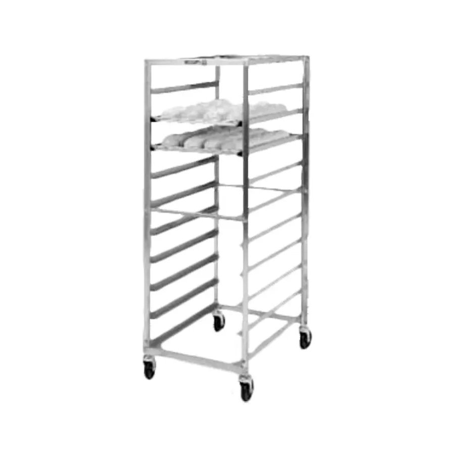Equip your commercial restaurant for sustainability with the versatile Lakeside Manufacturing 155 Pan Rack, Bun. This sheet pan/tray rack is designed to optimize space and efficiency in your kitchen. With a narrow opening and full height, it can accommodate up to 10 18" x 26" pans or 20 half-size pans, allowing you to maximize your baking capacity. The open sides and angle ledge provide easy access to your baked goods, while the 5" spacing ensures proper air circulation for even baking. Made of welded stainless steel, this rack is durable and easy to clean, making it a reliable choice for busy restaurant kitchens. The four 4" casters allow for easy mobility, so you can effortlessly transport your baked goods from the oven to the serving area. NSF certified and made in the USA, the Lakeside Manufacturing 155 Pan Rack, Bun is a must-have for any commercial restaurant looking to enhance productivity and sustainability.