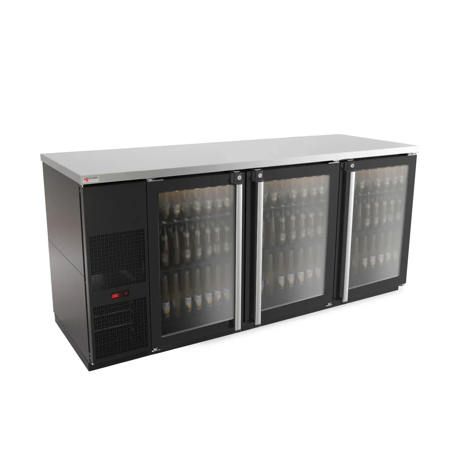 Elevate your culinary experience with the Micro Matic USA MBB78G-E Back Bar Cabinet. This Pro-Line E-Series Refrigerated Cabinet is designed to meet the needs of commercial restaurants, offering a spacious 30.8 cu ft. interior capacity. With three hinged glass doors, you can easily showcase your beverages while keeping them secure with the built-in locks. The cabinet features two flat shelves and four divider shelves, providing ample storage space for your drinks. The adjustable digital thermostat allows you to maintain the perfect temperature for your beverages, ensuring they are always served at their best. The front ventilated design and automatic condensate evaporator help to keep the cabinet running efficiently. Made with stainless steel interior walls and floor, as well as a stainless steel top, this cabinet is not only durable but also easy to clean. The black vinyl steel exterior adds a sleek and professional look to any restaurant setting. With its ENERGY STAR certification, this back bar cabinet is not only efficient but also environmentally friendly. Trust Micro Matic USA to deliver high-quality refrigeration solutions for your commercial restaurant needs.