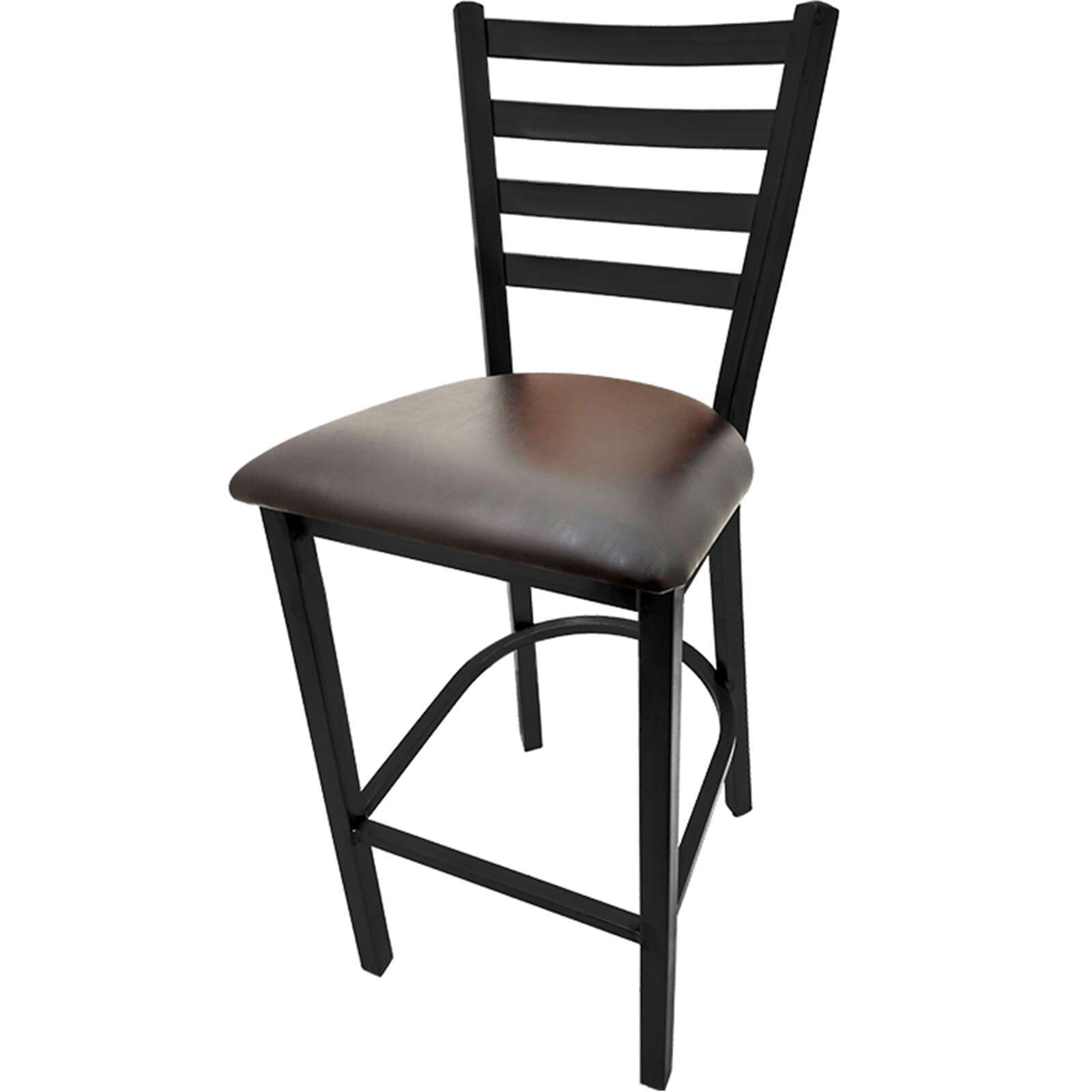 Enhance Vision Elegant Decor with the Oak Street BM-234-ESP Bar Stool. Designed for commercial restaurant use, this bar stool combines style and durability to elevate any dining space. The standard ladderback metal frame features a premium black powder coat wrinkle finish, ensuring long-lasting performance. The 1.2mm steel frame and 1-1/4" tubing provide exceptional strength and stability, while the 100% welded frame and footring add extra support. Non-marring glides protect your floors, and the standard leg supports offer additional reinforcement. The espresso vinyl seat adds a touch of sophistication and is easy to clean, making it perfect for busy restaurant environments. With simple assembly required and the seat shipping unattached from the frame, setup is a breeze. Trust Oak Street to deliver quality and style with the BM-234-ESP Bar Stool, the ideal choice for your commercial restaurant needs.